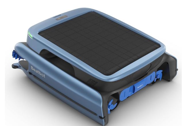 This is the Beatbot iSkim Ultra: a robotic pool skimmer that keeps your pool water in great shape. It has solar and magnetic wireless charging modes. It has a 10,000mAh battery. You can use your smartphone to control the speed, monitor water temperature and put this robot on a schedule.