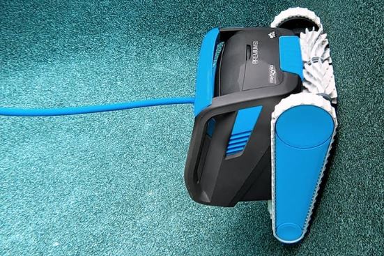 This is the Dolphin Premium 60: a WiFi connected robotic pool cleaner with multi-layer filtration that saves you time keeping your pool clean. It has wall climbing capability and can scrub the floor and walls of your pool. This robot has 4500 gph suction power. It is rated for pools up to 50ft. It works in rectangular, round, and other types of pools.