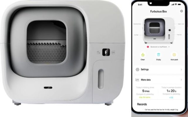 Here is another smart litter box that helps keep your home clean. The Furbulous Automatic Self Cleaning Litter Box has 7 sensors to detect movements and weight changes your cat experiences. You can use your phone to monitor daily usage. This litter box has a convenient OLED display and side handles.