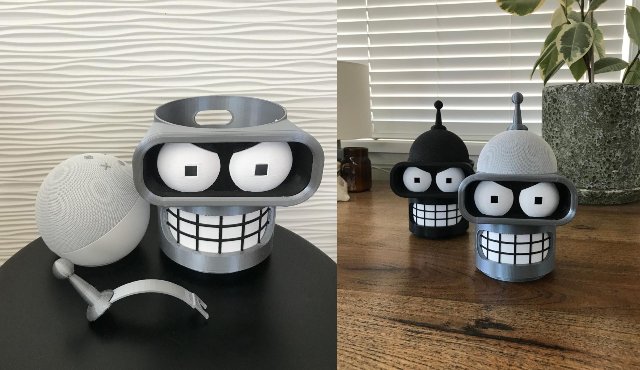 Here is a cool gift idea for Futurama fans. This Futurama Bender Echo Dot 4th Holder is 3D printed with a FDM printer. It holds your smart speaker and doesn’t interfere with its functions. Simply use the speaker as the brain for your Bender.