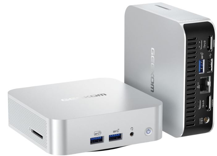 The GEEKOM A5 has 2 x HDMI 2.0 and 2 x USB 3.2 Gen 2 ports. This mini PC has a footprint of 4.6 x 4.4 x 1.9 inches.