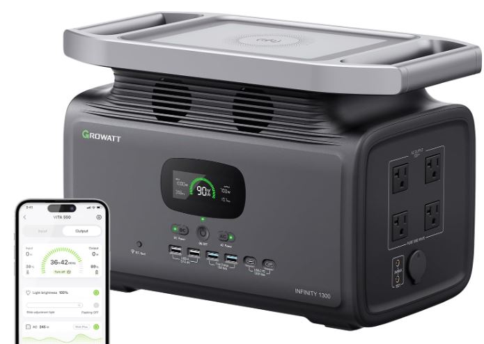 Getting stuck without power is not fun. Thanks to the GROWATT Infinity 1300, you don’t have to put up with that. It is a 1800W portable power station with 14 outputs and a 1382Wh LiFePO4 battery that is good for over 3000 cycles. You can charge this power supply in 1.8 hours.