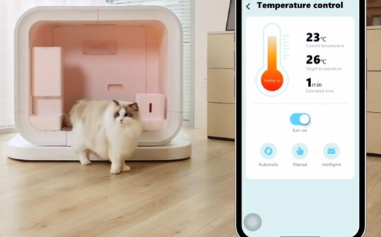 This pet house has a vacuum sealed pet feeder built-in. It combines with your phone to let you easily adjust feeding times. With its smart camera, you can monitor your pet’s activities and interact with them.