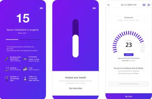 The KETOSCAN Ketone Meter gives you a reading after you breathe into it for 3 seconds. You can replace its sensor cartridge easily.