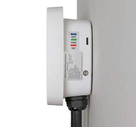 The Leviton EV Series Car Charger has an output of 9.6kW. It has WiFi connectivity and is RFID compatible.
