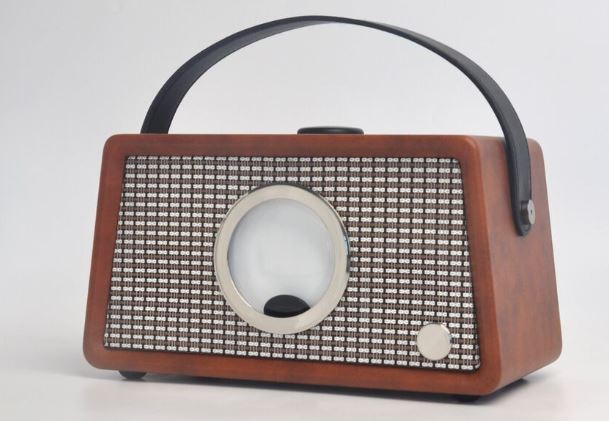 This speaker has a 20W footer and 2 x 10W dome tweeters. It also has a cute handle. You can find it on eBay.