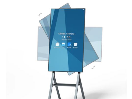 Here is a rotatable smart whiteboard that takes your meetings to the next level. The TIBURN Flip Hub 55″ S1 has a 4K UHD capacitive touchscreen display and runs Android. Its angle can be adjusted 75 degrees. You can also easily move it around. This model is compatible with iOS, Android, Windows, and mac OS devices. It supports screencasting from up to 4 users at the same time.